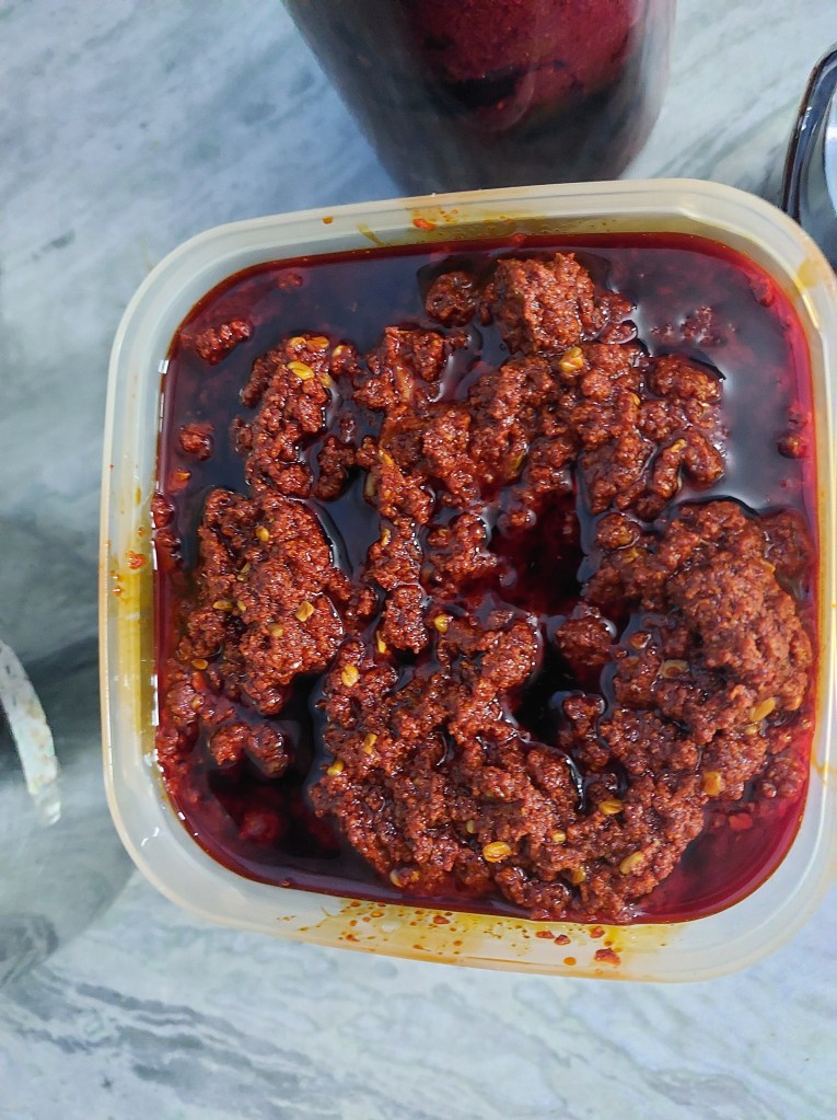 My MIL was also an expert at this obviously. She used to say that her expertise is in correcting the pickles that didnt come out right, than making them perfectly in one go. Actually she always made them flawlessly. She used to correct and improve other unfortunate or amateur people. An important motivation for persisting with avakaya preparation is that my son loves this. He cares for this alone to be packed for him to the US, well, at least until recently 😌