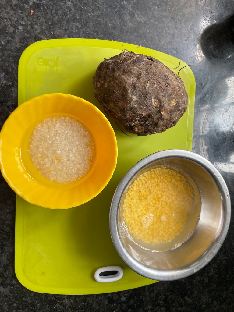From whatever memory was left, I gathered amma used to grind kandha with soaked pesara pappau and rice along with chillies, ginger, jeera. Quite like pesarattu plus kandha. Try it out and tell me if it tastes any similar 😅”