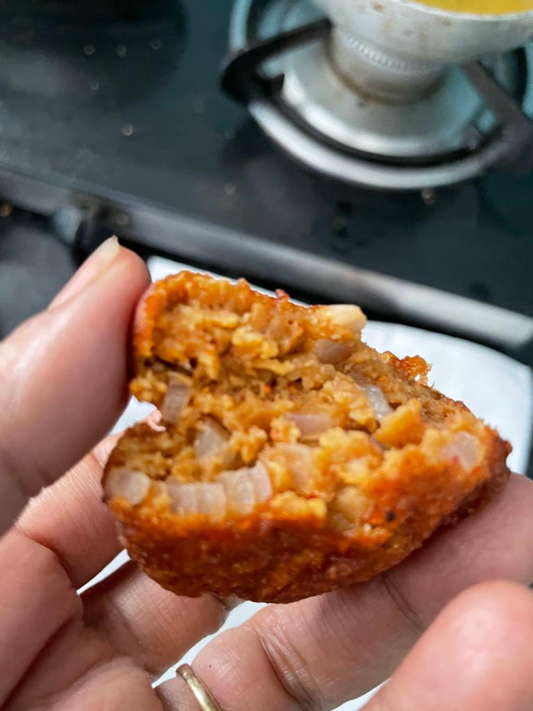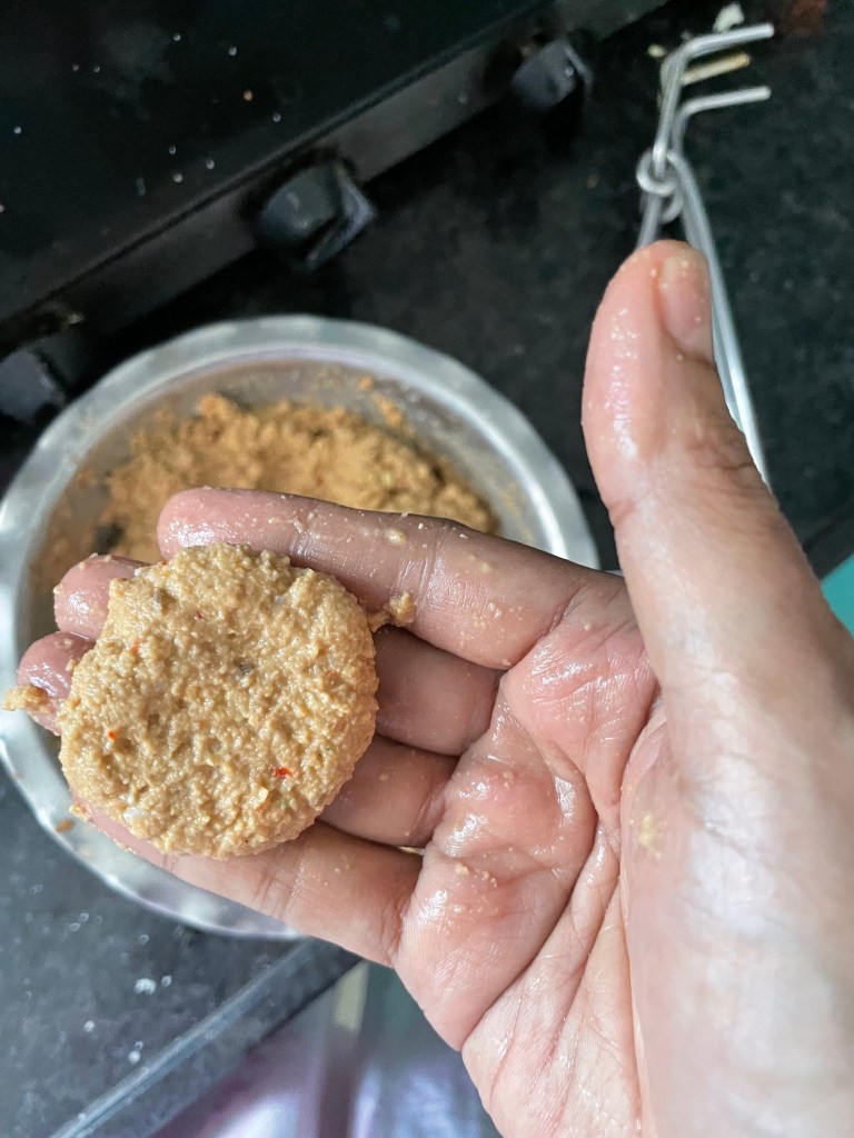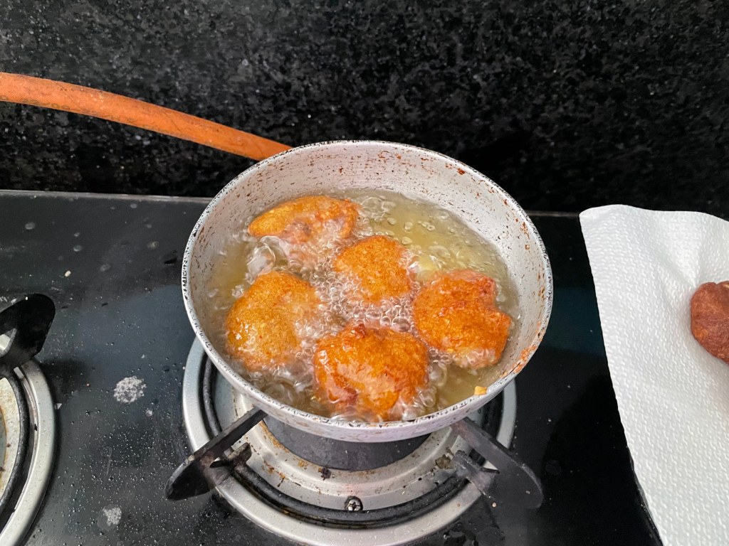 - Slightly wetting the hand make small vada like regular vada and gently release in hot oil.