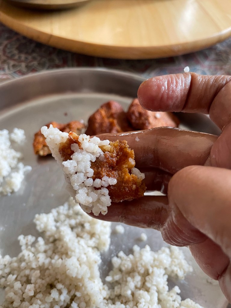 “Unfortunately I didn’t write it down in the days when I prepared them once in a while. For many years now I stopped making them and 2 years back when I wanted to, I couldn’t remember and internet had all different recipes by boiling kandha (trash 🙄; to each their own), that’s when I discovered that remarkable Palani swamy 😂 whose recipe was close still different.