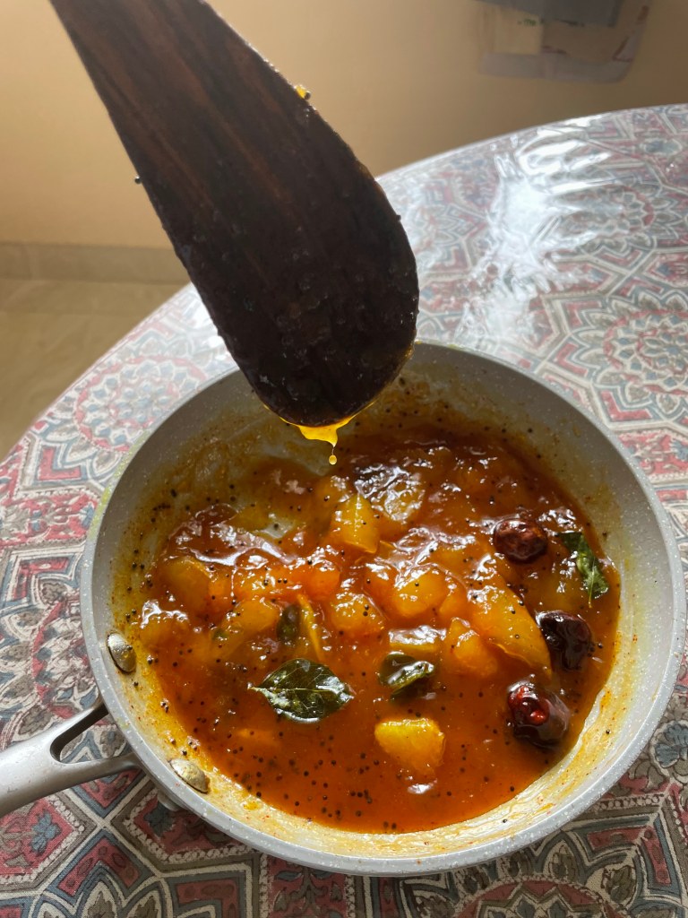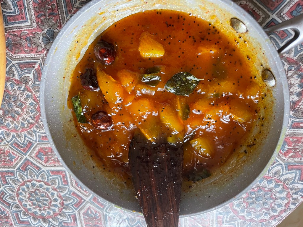 This simple dish is such a delectable side to any south Indian food or may be even northy chaat etc due to its tangy-sweet balance. It is prepared by cooking mature mangoes in jaggery and adding a little seasoning. That’s all!