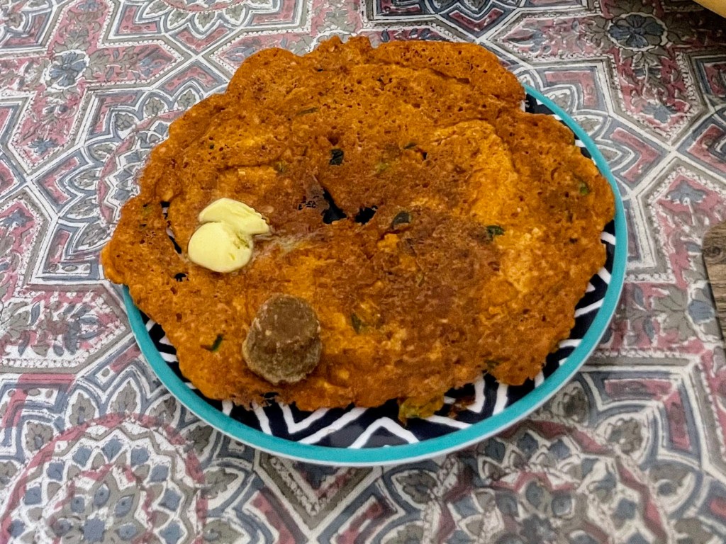 This progression had a sudden leap during COVID. My food preparation pivoted firmly and fully towards nutritive value and the outputs ended up tasting yummier. At home we both strictly adhered to the dictum of healthy food and regular exercise and fortunately enjoyed it. Results followed – both of us lost weight and felt more active. The protein rich preparations – pesarattu and adai (ha, there ☝️ finally 😅) became routine dinner entrées and main. The spell broke inevitably, with our shifting to Delhi though I was still careful with my cooking. Eating out 😞 😫