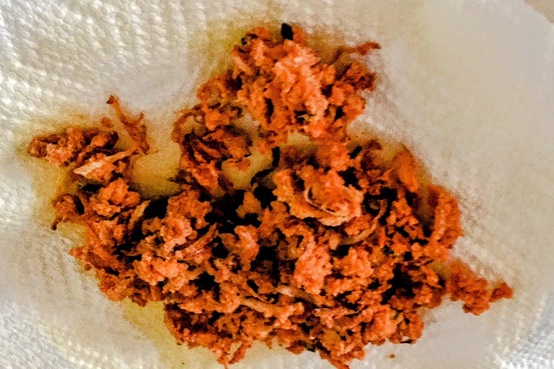 - Take a handful of this lump (not batter, not dough) and drop into hot oil by roughly crumbling it with fingers to fall as thin and well spread-out shapeless pieces.