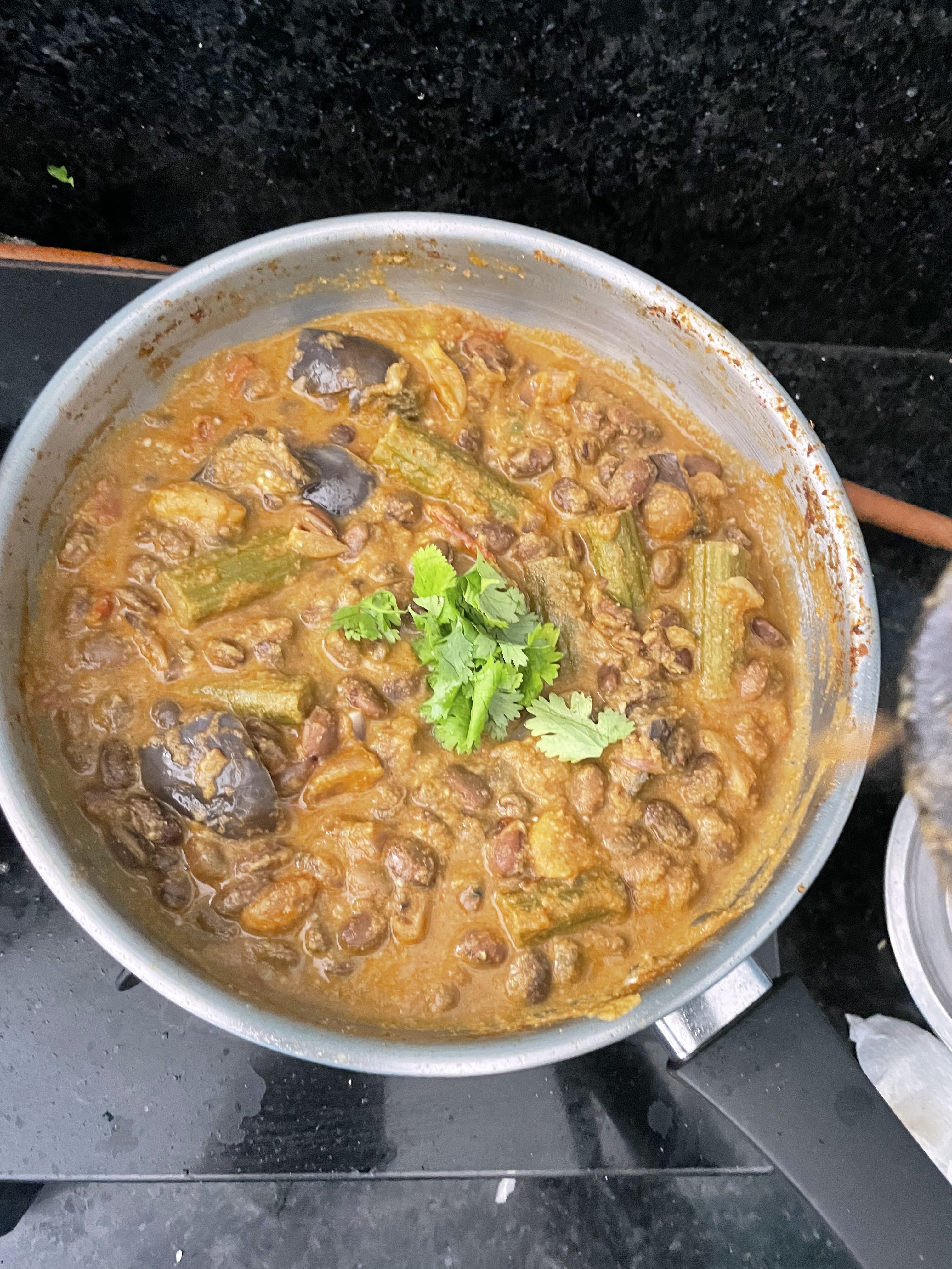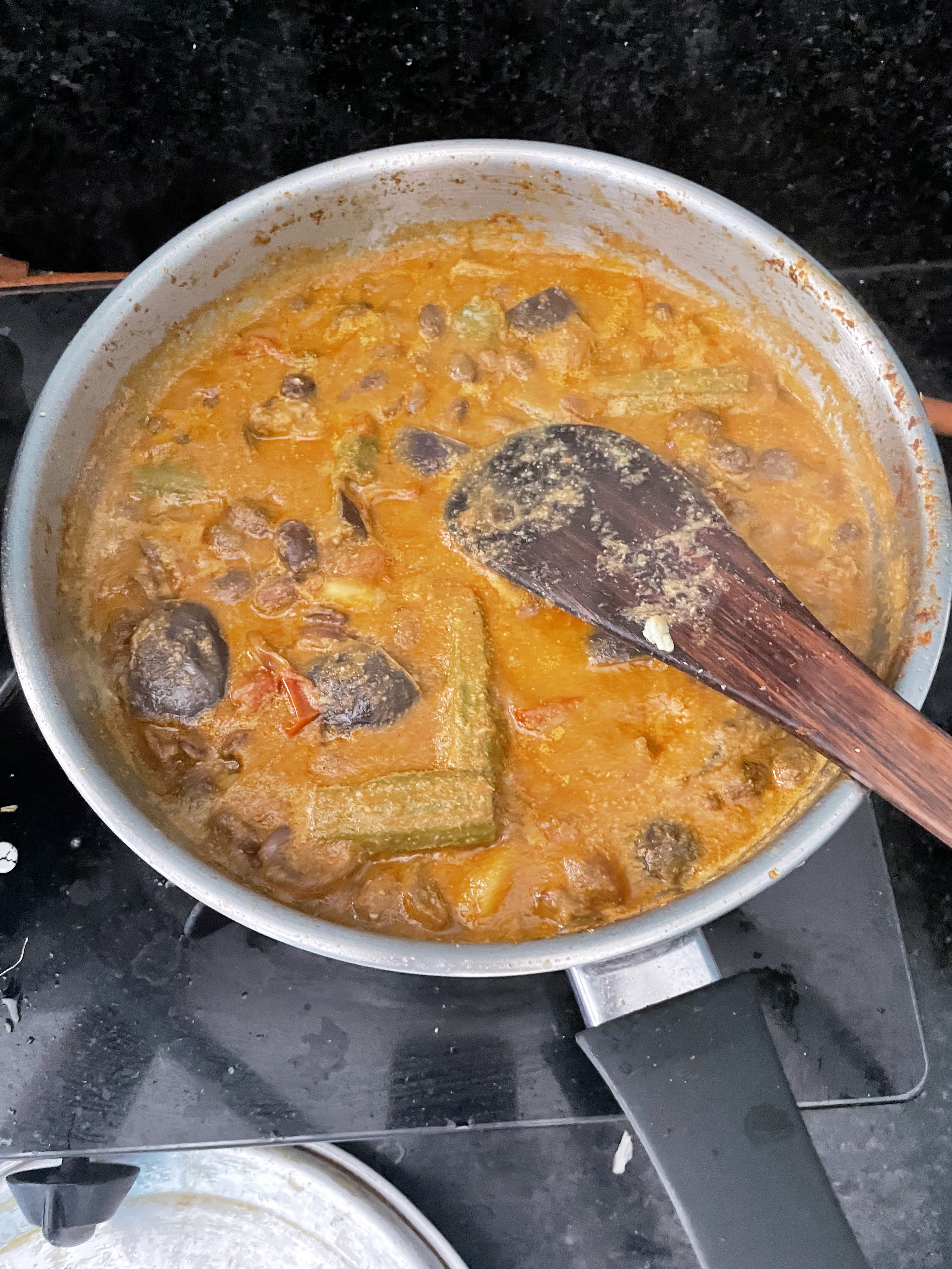5. Add drumstcik and brinjal and let them cook.