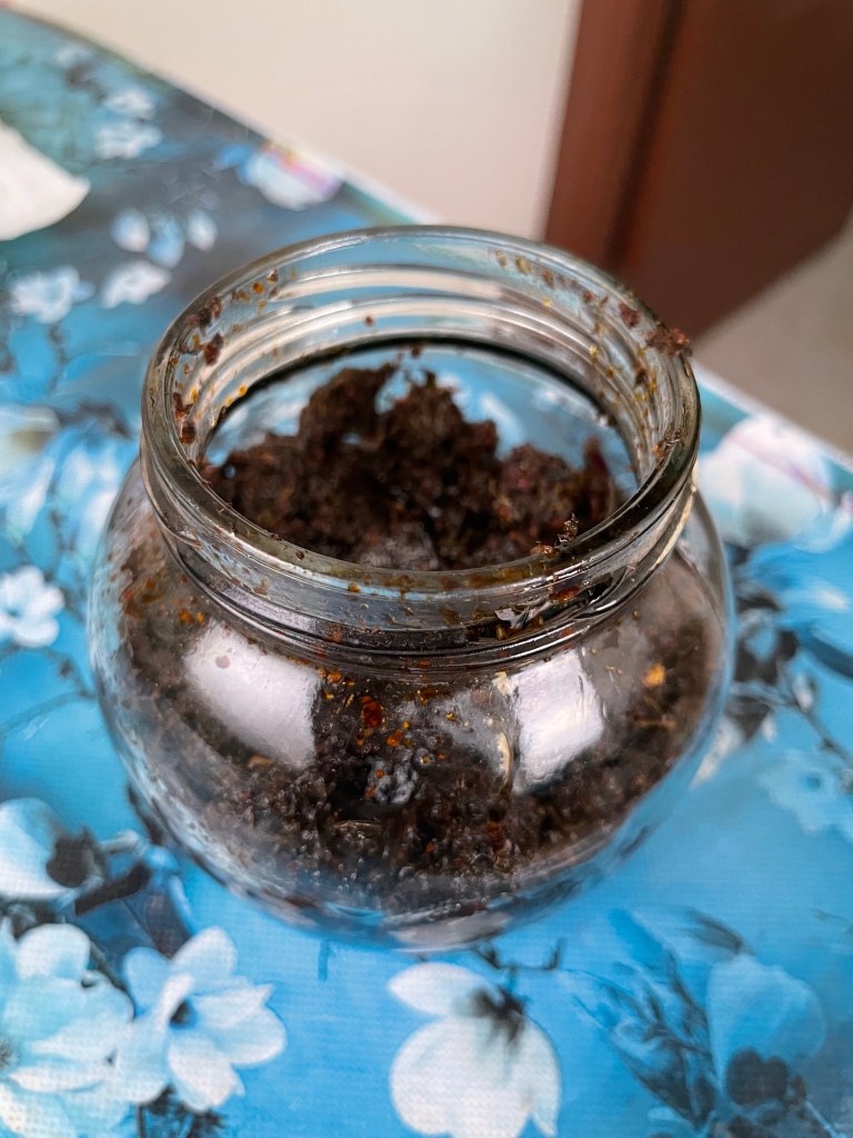 - Add the ground mixture to this and mix thoroughly. Adjust oil as needed.